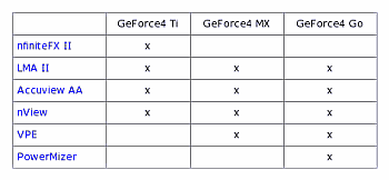 An dieser Stelle werde ich nur auf die wirklichen Neuerungen eingehen, wer mehr über NVIDIA's nFinite Engine wissen möchte (nennt sich bei GeForce 4 nFinite II), der sollte sich mein GeForce 3 Review ansehen. |