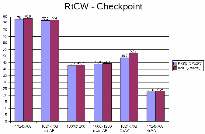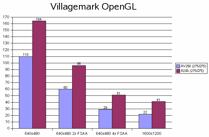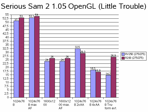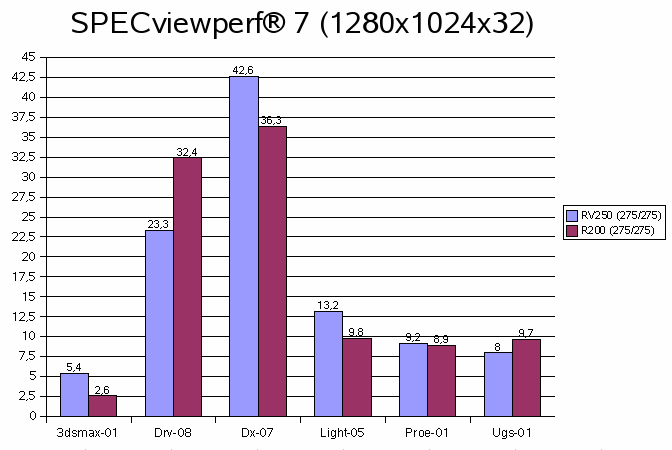 Serious Sam 2![]() Beide Karten liegen hier wieder dicht zusammen und die Resultate sind wesentlich besser, als unter DirectX. Bei Truform fällt auf, dass die Radeon 9000 stark verliert. Somit wurde bei dem RV250 Truform wohl über den Vertex Shader realisiert und nicht wie beim R200 über eine getrennte N-Patch Einheit. RtCW ![]() Auch hier ergeben sich keinerlei Unterschiede, lediglich beim 2xFSAA hat die Radeon 8500 einen kleinen Vorteil. Villagemark (32 Bit) ![]() Das gleiche Bild wie unter DirectX, die Radeon 9000 hat hier eindeutig Nachteile. LINUX ATi's Radeon 9000 PRO wird als M9 erkannt, somit dürfte auch der kommende mobile GPU unter Linux laufen. Die Radeon 8500 wird auch als solche erkannt. Eigentlich wollte ich die UT2003 Demo unter Linux und Windwos vergleichen. Leider läuft diese auf den letzten beta Linuxtreibern noch nicht. SPECviewperf Bei diesem CAD/CAM-Benchmark kann die Radeon 9000 auf ganzer Linie überzeugen. Lediglich beim DRV-08 und UGS-01 Test ist die Radeon 8500 schneller. Hier zeigen die internen Optimierungen des RV250 die größte Wirkung. RtCW Beide Karten machen auch unter Linux eine gute Figur. RtCW ist nur minimal langsamer als unter Windows. |